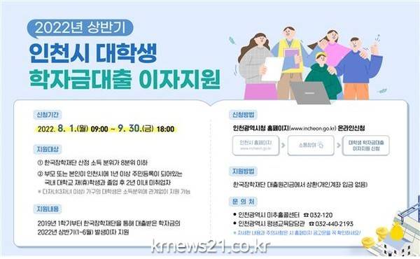 ▲ 사진=인천광역시인천광역시(시장 유정복)는 “2022년 상반기 학자금대출 이자 지원’ 신청을 오는 8월 1일부터 9월 30일까지 두 달 간 접수한다고 밝혔다.
