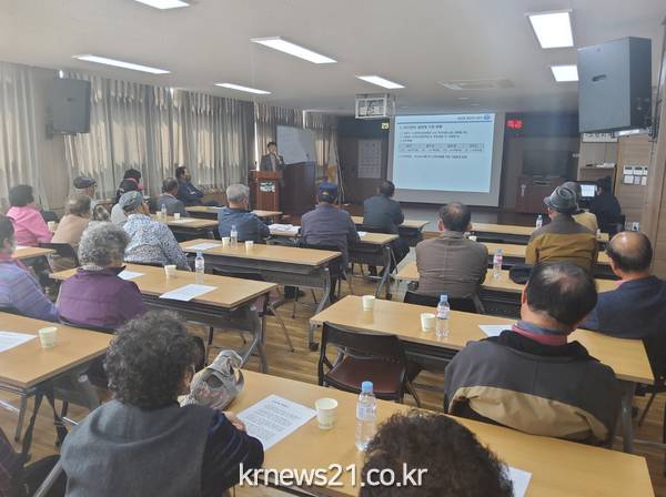 ▲ 사진=남해군설천노인대학은 10일 감홍경 설천면장을 초청해 특강을 진행했다.