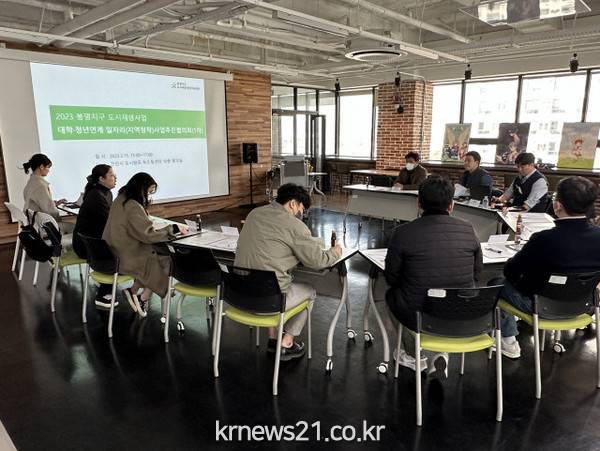 ▲ 사진=천안시 도시재생지원센터천안시 도시재생지원센터는 3월 15일 봉명지구 도시재생뉴딜사업 내 대학(청년)연계 일자리 창출 사업 추진을 위해 내외부 전문가들과 제1차 사업추진협의회를 개최했다.
