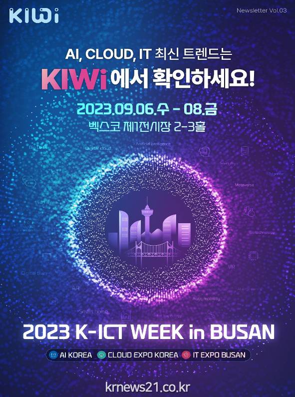 부산시는 오는 9월 6일부터 8일까지 3일간 벡스코 제1전시장에서 「2023 K-ICT WEEK in BUSAN」을 역대 최대 규모로 개최한다고 밝혔다.