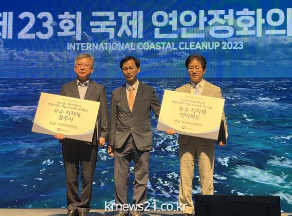 ▲ 사진=경주시경주시는 지난 21일 충남 보령 머드테마파크 컨벤션에서 개최된 제23회 국제 연안정화의 날 행사에서 ‘2023년도 해양쓰레기 저감 우수사례 경진대회’ 우수상을 수상했다.