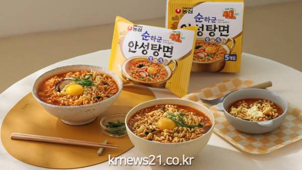 농심은 안성탕면 출시 40주년을 맞아 신제품 ‘순하군 안성탕면’을 23일 새롭게 선보인다. 고춧가루를 사용하지 않아 스코빌지수 0의 순한맛 제품으로 중량과 가격이 기존 안성탕면과 동일하다(125g, 소매점 기준 900원).