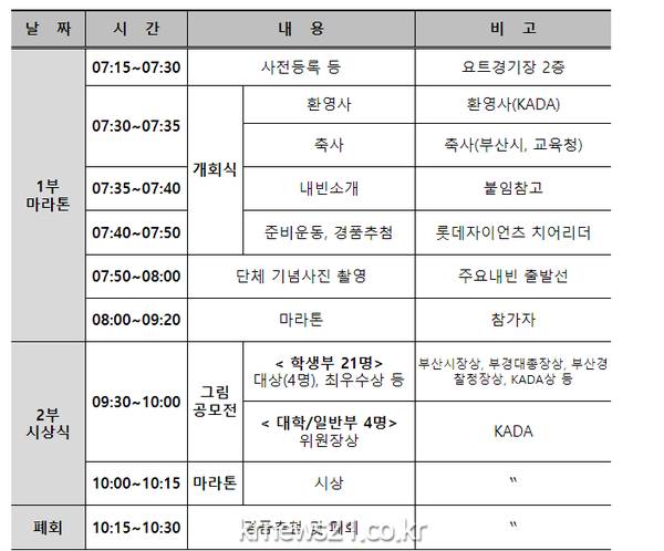 부산시(시장 박형준)는 한국도핑방지위원회가 오는 8일 오전 7시 30분 해운대구 수영만 요트경기장에서 단거리 마라톤(5km) ‘바다런’을 개최한다고 밝혔다.