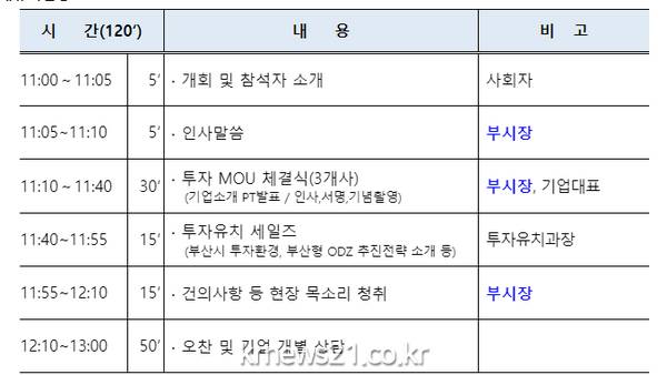 이번 설명회는 부산시와 수도권 첨단기술기업 3개 사 간 투자양해각서(MOU) 체결을 시작으로 올해 투자유치 성과와 투자유치 우수사례, 전국 최대규모의 투자유치 지원제도를 소개하고, 이성권 부산시 경제부시장이 주재하는 기업인들과의 질의응답 순으로 진행된다.