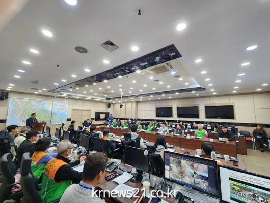▲ 사진=김포시김포시(시장 김병수)는 19일 김포시 재난안전상황실에서 자율방재단 대표, 읍면동 재난담당자 등 40여명이 참석한 가운데 2024년 여름철 자연재난 사전대비 간담회를 개최하였다.