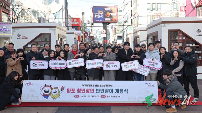 ▲ 사진=마포구 마포구(구청장 박강수)는 1월 5일 레드로드에서 청년이 실제 상권에서 가게를 운영하며 창업 경험을 쌓을 수 있도록 기획한 ‘청년상인 반년살이’ 5개소의 개점식을 열고 본격 운영에 들어갔다.