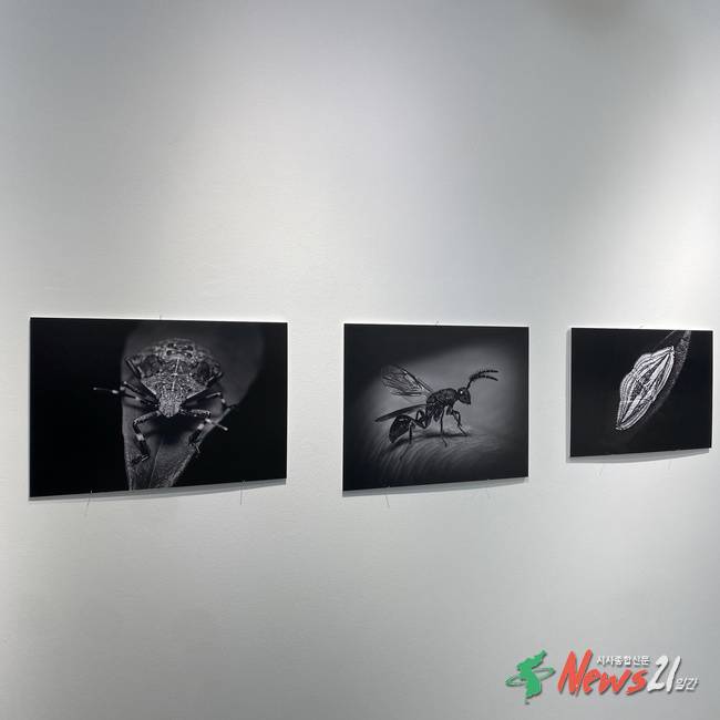 진솔한 작가는 곤충의 질감과 형태에 집중 할 수 있도록 색을 과감히 배제한 흑백 사진 형식으로 작품을 제작했다.