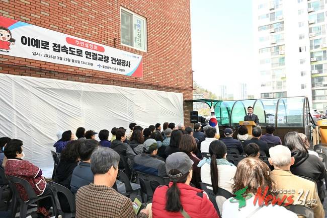(뉴스21일간/노유림기자)=울산 중구가 3월 23일 오후 1시 30분 희마아파트 주차장 일원(태화동 460-3번지)에서 ‘이예로 접속도로 연결교량 건설공사’관련 주민설명회를 개최했다.