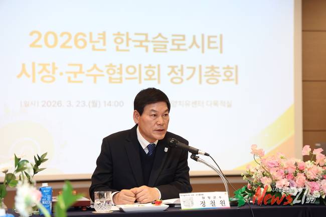 담양군이 지난 23일 태안군 해양치유센터에서 열린 '2026년 한국슬로시티 시장·군수협의회 정기총회'에 참석해 제9기 협의회 회장군으로 선출됐다.