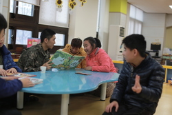 학생들에게 책을 읽어 주기도 하고 운동도 함께 하며 학습활동을 적극적으로 하는 모습을 보였다. 봉사활동이 끝나고 다과를 나누면서 자신들이 보람을 느끼는 하루였다고 소감을 나누는 시간을 가졌다.