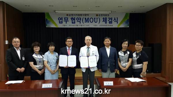 순천시자원봉사센터(소장 김일중)와 순천의료원(원장 이창용)은 오늘(27일) 업무 협약식을 갖고 지역사회를 위한 상호협력을 다짐했다.