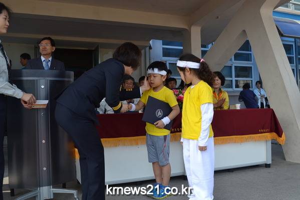 칭찬해주기 위하여 표창장과 상품권을 가지고 학교로 찾아갔는데 때마침 학교 운동회여서, 전교생이 함께한 자리에서 표창장을 수여하고 선행을 칭찬