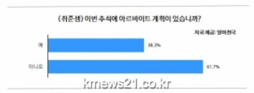 취업준비생 10명 중 4명은 성큼 다가온 민족 최고의 명절 추석에도 구직 준비와 아르바이트에 여념 없을 전망이다.