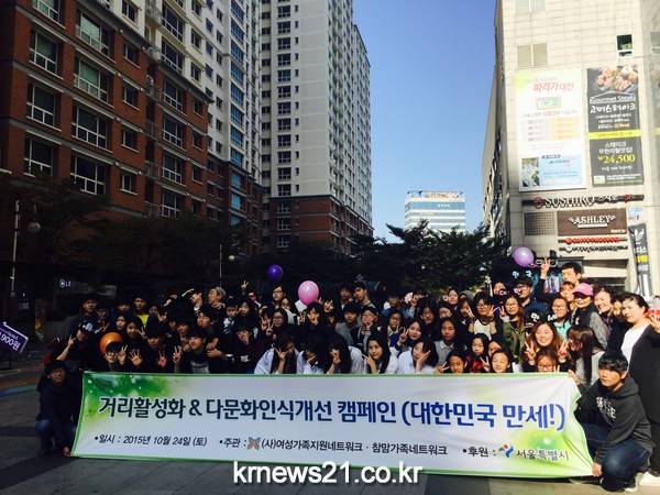15년 서울시 다문화가족지원 특화사업으로 다문화인식개선 ‘대한민국 만세’ 프로그램으로 대학생을 대상으로 다문화인식 개선 서포터즈 교육 후 지역주민 및 어린이집을 방문하여 다문화인식개선을 위한 캠페인을 지난달 24일 실시했다.