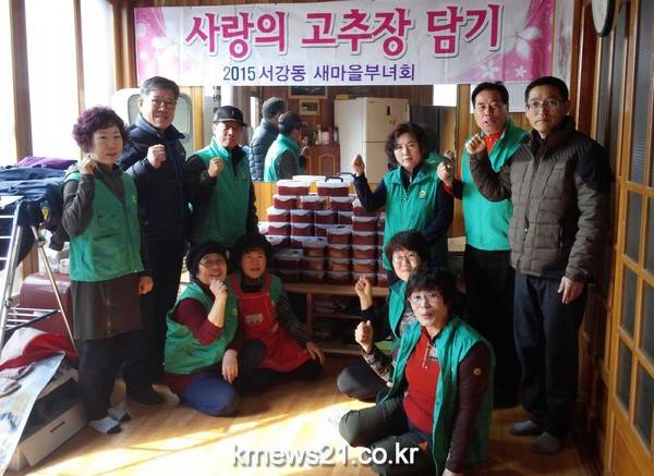 한편 서강동 새마을부녀회는 매년 ‘사랑의 고추장 담그기 행사’뿐만 아니라 ‘김치 나눔 행사’ 등 지역 내 어려운 이웃을 위한 봉사활동을 지속적으로 펼치고 있으며, ‘아름다운 여수 가꾸기’에도 솔선수범하고 있다.