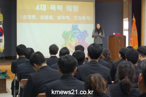 소방서 3층 회의실에서 진행된 이번 교육은 구체적인 사례를 통해 성희롱 등 4대 폭력의 문제점과 사회적 부작용, 개인적인 피해 등을 알기 쉽게 설명해 직원들로부터 큰 호응을 얻었다.이날 차희연 강사는 성희롱이 발생하는 이유와 근본적인 예방대책 등 사례를 설명한 후 성희롱 예방을 위한 직장문화 및 환경개선 방안을 제시했다. 또한 4대 폭력은 타인을 존중하는 마음으로 행동 전 5초만 생각하면 충분히 예방할 수 있다고 강조하였다.