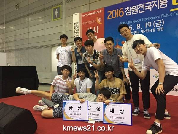 국립한경대학교(총장 태범석) 전기전자제어공학과 학생(박희수, 신지훈, 오세령)으로 구성된 ‘CVLab 팀’(지도교수 김상훈)이 지난 8월 20일(토) 창원컨벤션센터에서 개최된 ‘2016 창원전국지능로봇경진대회’에서 대상을 수상했다.