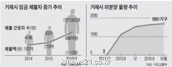 지역 부동산 업계에선 "투자 목적에서 대출을 받아 집을 산 사람도 많은데, 내년부터 아파트 입주량이 급증해 전반적인 집값이 하락하면 대출을 갚지 못해 파산하는 집이 속출할 것"이라는 말이 퍼지고 있다. 현장에서 만난 거제 주민들은 국회에서 탄핵안이 통과되면서 한고비를 넘긴 만큼 고통받는 지역에 눈길을 돌려 달라고 호소했다.