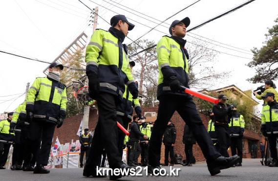 경찰은 지지자들이 도로 위에 앉거나 눕지 못하도록 빼곡하게 서서 길을 막았다. 한 남성 지지자는 취재진을 향해 화를 내다가 한 사진기자에게 먹다 먹은 커피를 뿌리다 경찰에 연행됐다.