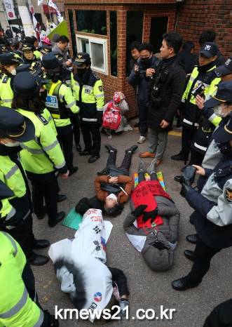 지지자 30여명은 아예 길바닥에 드러누워 "우리가 죽더라도 대통령을 살려야한다"고 소리쳤다.