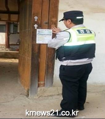 안성경찰서(총경 연명흠)에서는 농․축산업 종사자가 다수 거주하는 안성지역에 봄철 빈집이 많은 계절적·지역적 특성을 고려하여, 빈집털이 예방 순찰활동을 강화하고자 「‘포돌이 똑!똑!’ 서비스」라는 지역맞춤형 범죄예방활동을 실시중이다.