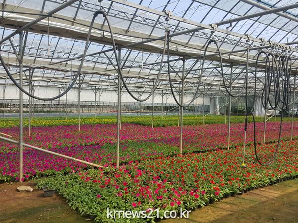 진도군농업기술센터가 사계절 꽃이 피는 아름다운 관광 진도를 만들기 위해 봄꽃을 생산하고 있다.