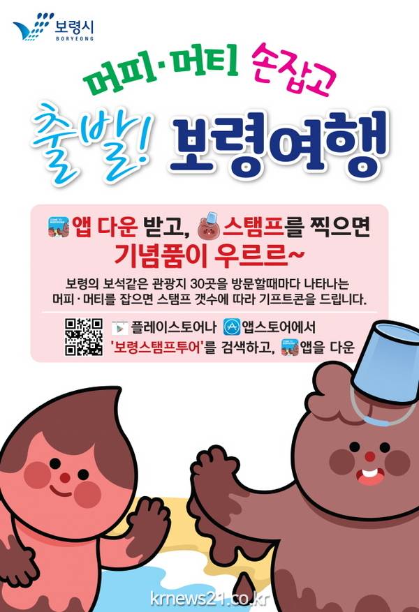 플레이스토어나 앱스토어에서‘보령스탬프투어’를 검색해 앱을 내려 받은 후, 증강현실게임‘포켓몬 고'처럼 앱을 통해 거리와 위치를 확인하면서 머드캐릭터인‘머피와 머티’를 터치해 스티커를 획득하고, 일정 개수 획득 후 앱에서 신청하면 기프티콘 등의 선물을 받을 수 있다.