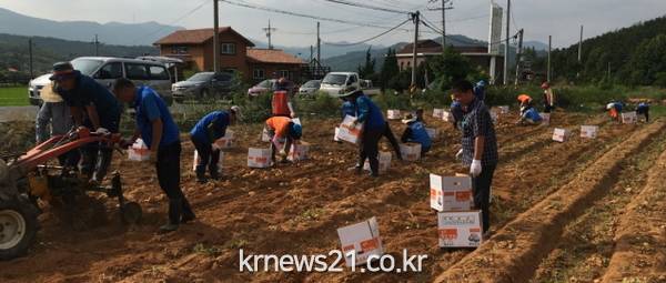 보령시 청라면(면장 김만수)은 지난 21일 오후 주민자치위원 등 40여 명이 참여한 가운데, 이웃 사랑 실천을 위한 사랑의 감자를 수확했다.