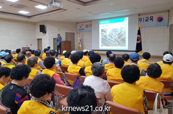 노인 교통안전 강사 위촉 이후 처음으로 대한 노인회 보령시지회 대강당에서 노인 일자리 사업에 참가하는 어르신 270명을 대상으로 본격적인 교육.홍보를 시작, 노인 교통사고에 청신호를 켰다.