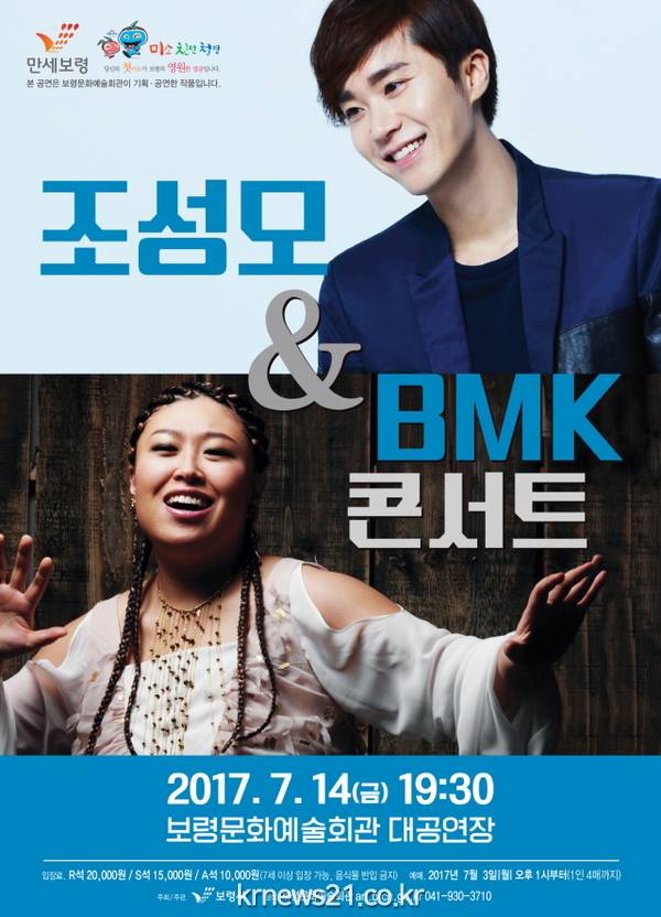 보령시는 오는 14일 오후 7시 30분 보령문화예술회관 대공연장에서 조성모와 BMK 슈퍼콘서트를 개최, 한여름 낮의 태양보다 더 화끈한 공연을 선보인다.
