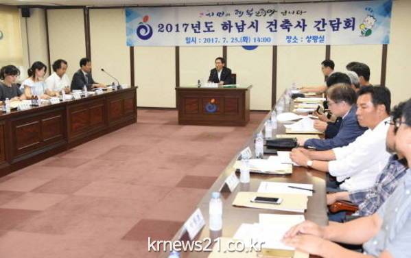 경기도 하남시(시장 오수봉)는 지난 25일 시청 2층 정책토론실에서 하남시 건축사 30명이 참석한 가운데 2017년도 건축공사장 안전사고 제로실천 추진을 위한 ‘건축사 간담회’를 개최했다.
