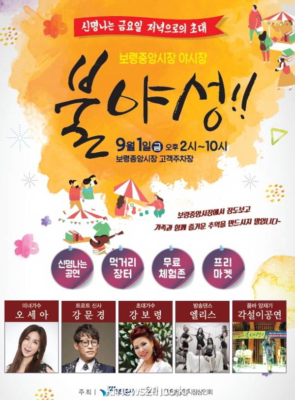 김일환 상인회장은 “전통시장과 문화가 한데 어우러진 보령중앙시장의 야시장인 ‘불야성’행사에 시민들의 많은 참여를 바란다”고 말했다.