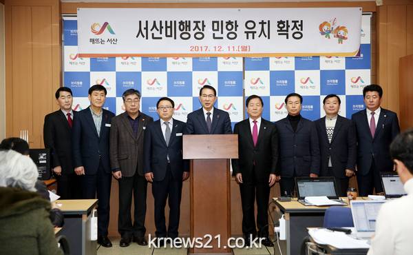 11일 이완섭 시장은 기자회견을 열고 국토교통부에서 시행한‘서산군비행장 민항시설설치 사전타당성검토’를 통과해 서산공항 개발의 확정사실을 밝히고 환영의 뜻을 내비쳤다.