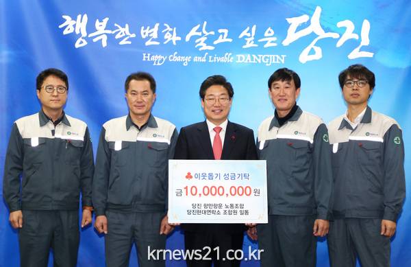 또한 같은 날 당진항만항운노동조합(위원장 김봉균)과 당진현대연락소 조합원들은 함께 1만 원 이하의 월급 절사금을 모아 1,000만 원의 성금을 마련해 기탁했으며, 당진장로교회(담임목사 김재국)도 이웃돕기 성금 100만 원을 기탁하며 나눔 행렬에 동참했다.