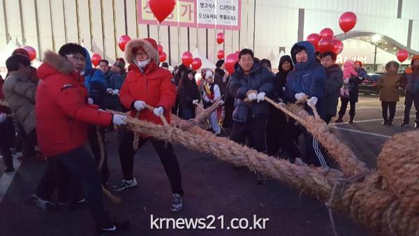 2018년 무술년(戊戌年) 새해를 맞아 1월 1일 당진 행담도 휴게소 모다 아울렛에서 화합과 번영을 기원하는 기지시줄다리기 한판이 열렸다.