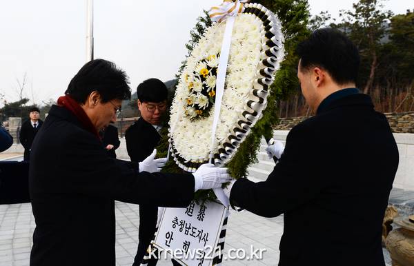 안희정 충남지사가 2일 무술년 새해 첫 공식 일정으로 충남 보훈공원에 들러 참배했다.