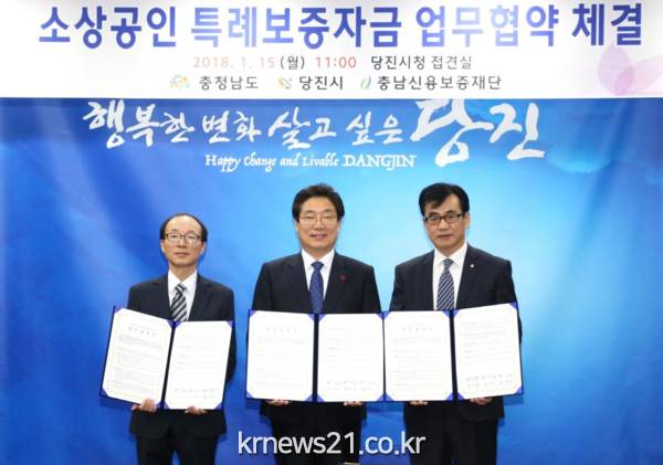 당진시에 따르면 시와 충남신용보증재단은 15일 당진시청에서 ‘당진시 소상공인 특례보증자금 업무협약’을 체결했다.