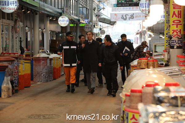 이창섭 도 소방본부장은 지난 8일 광천전통시장을 방문, 전통시장 내 방재시스템 확보를 위해 추진되는 ‘화재감지시설 설치 사업’을 안내하고 시장 상인회 차원의 적극적인 참여를 독려했다.