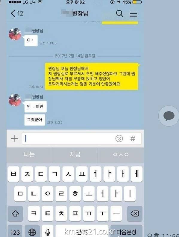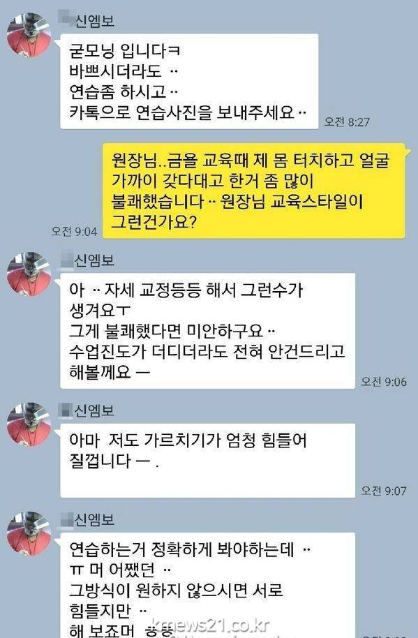성추행을 당한 수강생이 원장 신모씨와 나눈 카톡
