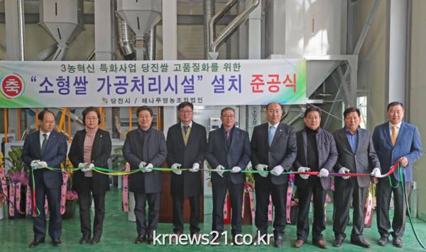 시 관계자는 “소형 쌀가공처리시설을 갖추면서 해나루영농법인은 연간 2,000톤 수준이던 쌀 생산량을 점차 늘려 나갈 계획”이라며 “지역 농가의 집단화와 규모화에 도움이 되는 소형 쌀가공처리 시설은 향후 당진쌀 고품질화를 이끄는 첨병이 될 것”이라고 말했다.
