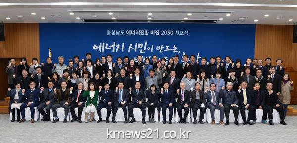 도는 21일 도청 대회의실에서 ‘충남 에너지전환 비전 선포식’을 열고 에너지 시민 시나리오에 기반한 충남 에너지전환 비전과 실천과제를 선포했다.