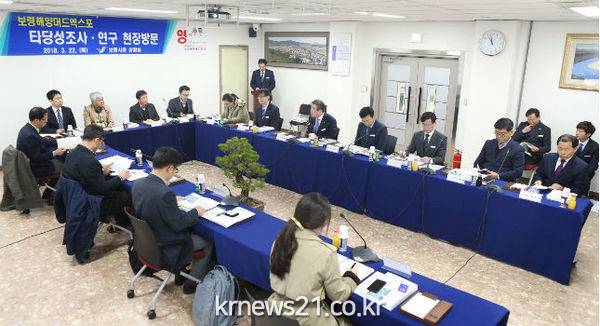 보령시에 따르면 지난 22일 오전 시청 상황실에서 대외경제정책연구원, 해양수산부, 충청남도, 보령시, 충남연구원, 청운대학교 산학협력단 등 관계자 15명이 참석한 가운데 2022보령해양머드엑스포 국제행사 타당성조사 연구 기본계획서 설명회를 가졌다.