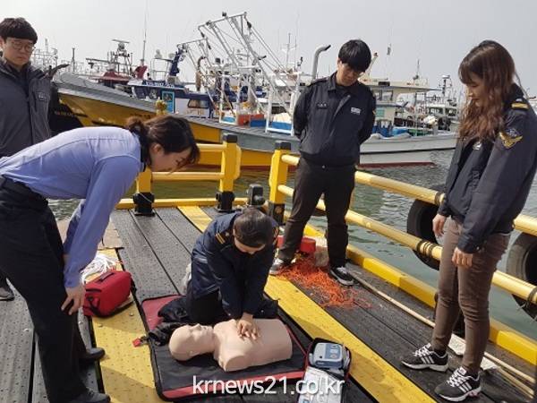 보령해양경찰서(서장 이진철) 교육훈련팀은 28일 오후 대천항 전용부두에서 소형방제정(S-18정) 승조원 6명을 대상으로 소형방제정 예방 순찰활동 시 인명구조 상황발생을 대비한 인명구조 교육을 실시했다고 밝혔다.