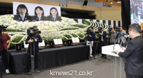 오늘 우리는 아름답고 숭고한 삶을 살다 가신 故 김신형 소방장님과 문새미, 김은영님을 떠나보내기 위해 모였습니다.