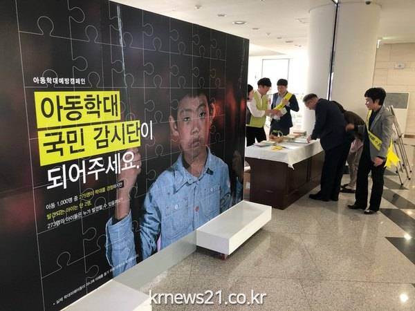 충남도는 어린이주간(5월 1∼7일)을 맞아 4일 도청 본관 로비에서 아동학대 예방 캠페인을 개최했다.