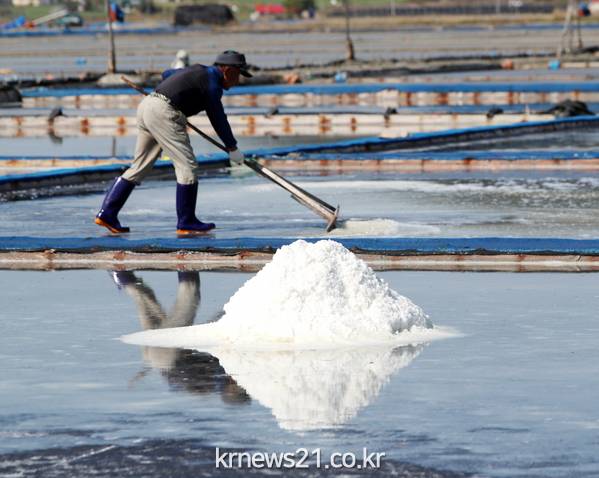 태안군의 명물 ‘송화소금’이 본격적인 생산에 들어갔다.