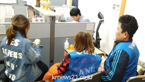 ▲ 불법체류자 외국인을 조사하고 있는 장면.(좌측 청색 자켓입은 여성은 통역담당자)