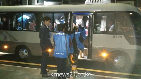 ▲ 불법체류자 14명을 대전출입국외국인사무소에 인계하기 위해 버스에 탑승장면