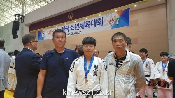 ▲ 보령중학교, 제47회 전국소년체육대회 유도 보령중 김효준군 동메달 획득 기념장면