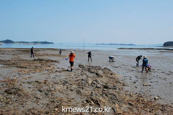▲ SNS 운영자 초청 도서지역 팸투어 갯뻘 체험장면